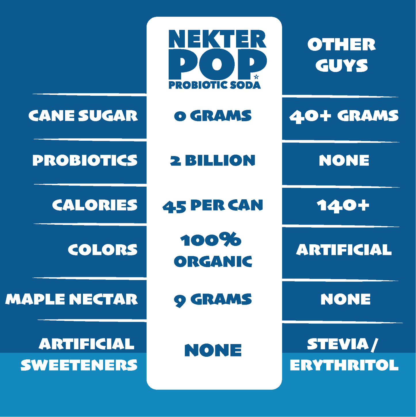 Discover Nekter Pop, where fizzy delight supports gut health! Our premium organic soda is crafted with Maple Nectar, a natural sweetener infused with 2 billion CFUs of DE111 probiotics to promote digestive wellness. Organic, free of synthetic sweeteners, and zero added-sugar, it’s sustainably made in vibrant flavors: Orange, Lemon-Lime, Black Cherry, and Root Beer. Sip joyfully!